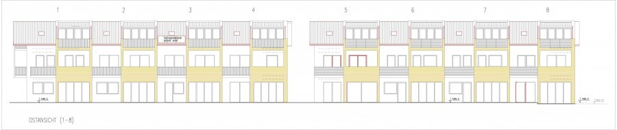 Das Projekt sieht im südlichen Teil die Errichtung von 2 höhenmäßig versetzten Gebäudezeilen für insgesamt 16 Reihenhäuser vor. Der nördliche Teil ist 4 Gebäudeblöcken mit insgesamt 17 Wohneinheiten vorbehalten. Diese weisen verschiedene Wohngrößen auf. 8 Wohneinheiten haben eine Nettowohnfläche von max 110 m2, 7 Wohneinheiten weisen zwischen 90 und 98 m2 auf, 2 Wohnungen haben etwa 78 m2 Nettofläche.