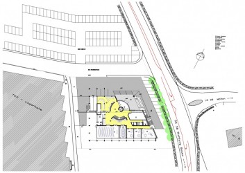 Planungskonzept: die Büroflächen sind L- förmig um eine zentrale Halle mit Treppenhaus angeordnet, und nach Süden und Westen gerichtet. Die Fassaden sind Leichtmetallvorhangfassaden mit vorgelagerten Balkonen (für die Reinigung, Instandhaltung).